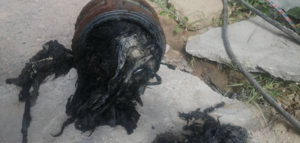 Самой линии водоотведения потребовалась также срочная промывка с помощью специальной установки. Ведь значительная часть участка сетей микрорайона оказалась загрязнена остатками гипсокартона, плотно обёрнутого кусками ткани.