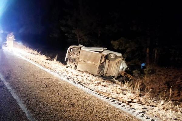 В перевернувшейся машине погибла 36-летняя пассажирка. Она скончалась от тяжёлых травм на месте аварии.