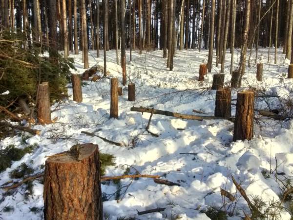 Сейчас рабочие продолжают вырубать многолетний лес. Также снят плодородный слой почвы. Для строительства завезли блоки ЖБИ.