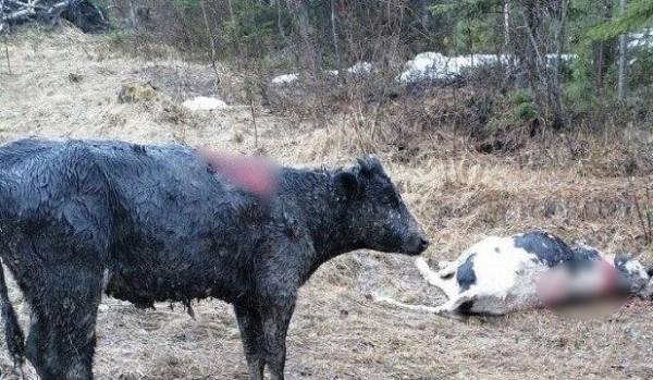 Медведь удалось задрать одного телёнка и сильно ранить второго. После чего зверь скрылся в ближайшем лесу.
