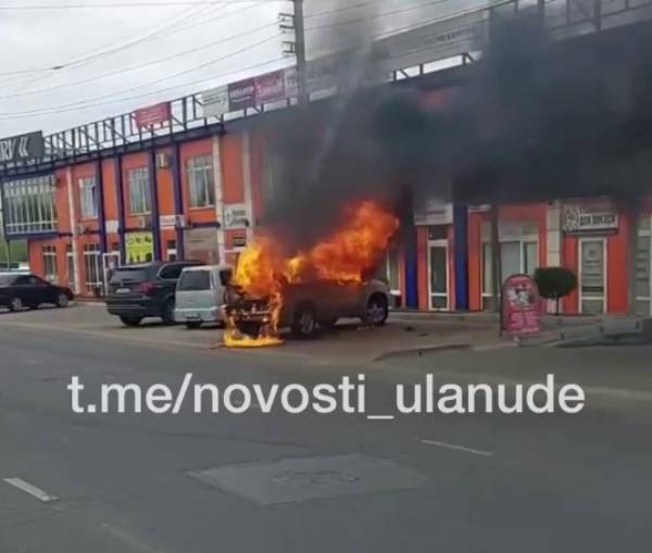 Сегодня днём на улице Сахьяновой в Улан-Удэ полыхал автомобиль.