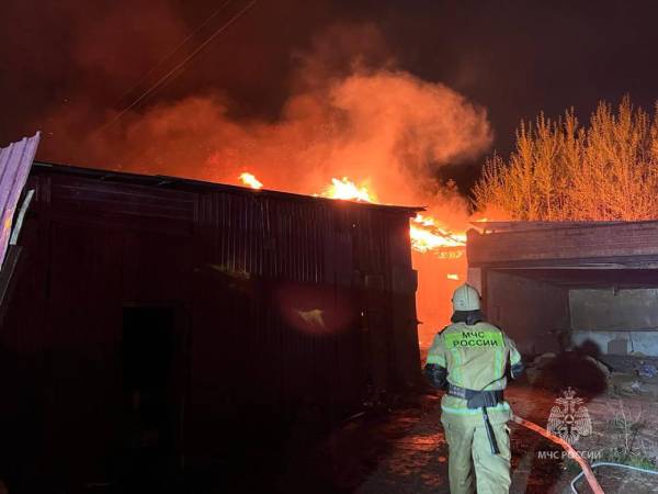 На момент прибытия пожарных горели три отдельно стоящих строения, существовала угроза перехода огня на жилые дома.