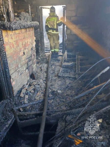 В 17:42 открытый огонь был потушен. Внутри гаража были обнаружены остатки сгоревшие машинки для майнинга.
