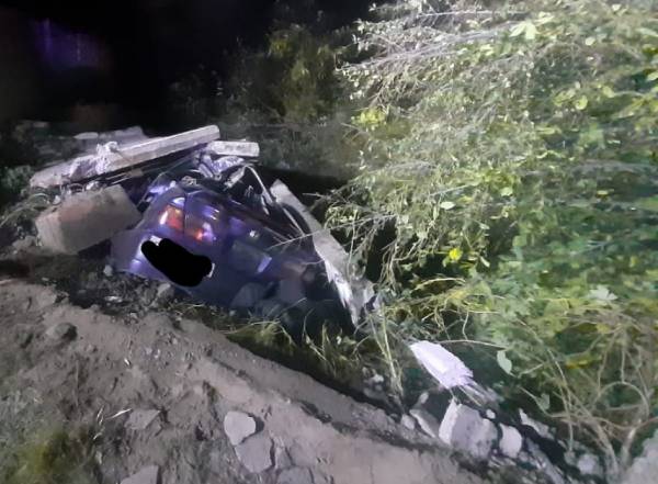 Когда водитель чуть покаталась и возвращалась обратно к магазину, её ослепили фары встречного автомобиля. Не справившись с управлением, водитель на высокой скорости врезалась в бетонный забор. Одна из плит упала на салон автомобиля и придавила пассажиров.