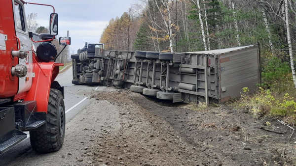 Утром 16 октября на 283-м км федеральной трассы Р-258 «Байкал» в Кабанском районе Бурятии произошло ДТП. В 5 км от города Бабушкин опрокинулся большегруз.