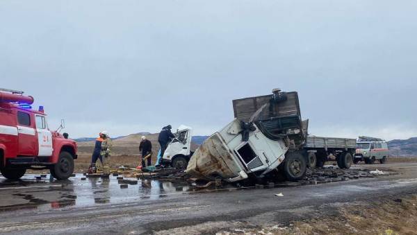 Сегодня около 11 часов в Иволгинском районе Бурятии лоб в лоб столкнулись два грузовика.