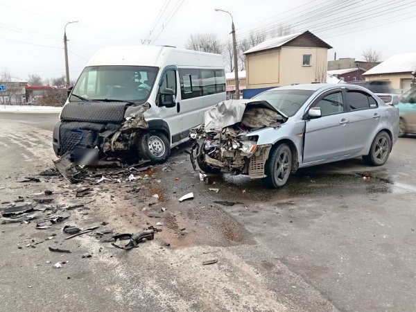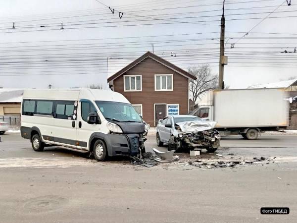 По предварительной информации, 30-летний водитель Mitsubishi Lancer, поворачивая с улицы Рабочего штаба на улицу Петрова, врезался в марршутку, следовавшую во встречном направлении.