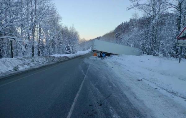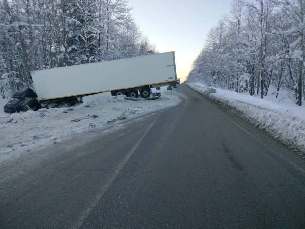 На 164 километре федеральной трассы Р-258 «Байкал» в районе посёлка Мурино Слюдянского района Иркутской области большегруз с полуприцепом съехал в кювет. Инцидент произошёл утром 8 января.