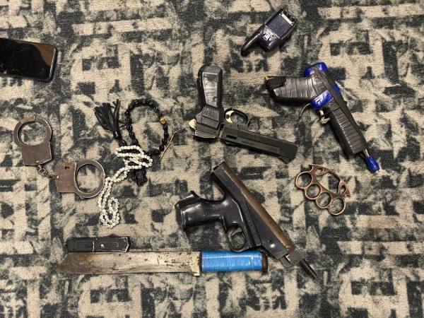 Следователи СК проводят необходимые следственные действия. В квартире обвиняемого изъяли ножи, наручники, три пистолета и другие предметы, интересующие следствие.