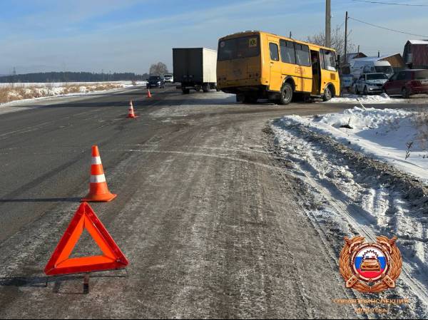 19 января в селе Пивовариха Иркутского района на автодороге столкнулись грузовой автомобиль ГАЗ и школьный автобус ПАЗ. ДТП произошло в районе Голоустненского тракта в 11:40.