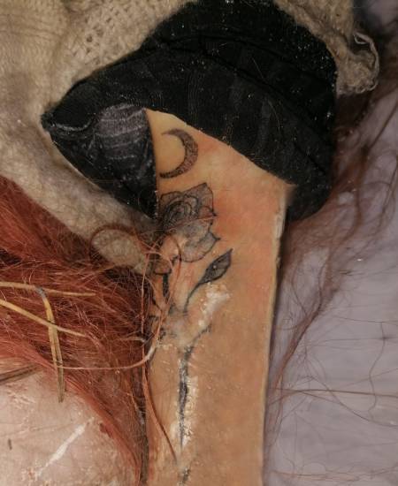 Особые приметы: на внутренней поверхности правого предплечья имеется татуировка в виде розы и полумесяца.