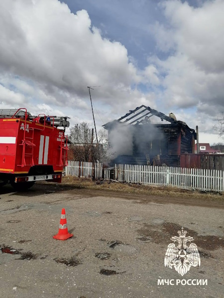 В настоящий момент локализовано открытое горение на площади 39 кв.м., продолжаются работы по проливке конструкций дома.
