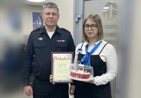 Чуть ранее полицейские поблагодарили бдительных менеджера и специалиста службы безопасности банка.