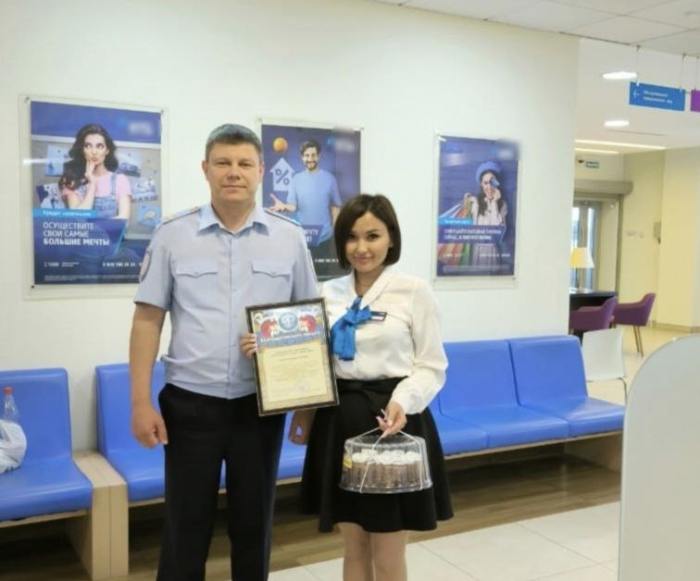 Заместитель начальника управления МВД России по Улан-Удэ Григорий Смирнов встретился с Викторией и вручил ей благодарность.