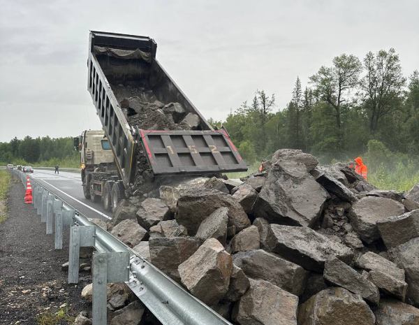 Для возобновления движения решено было отсыпать подходы к мосту скальным грунтом. Накануне в работе задействовали 20 самосвалов, два фронтальных погрузчика и один экскаватор. Однако вскоре было решено увеличить количество техники до 25. Грунт начали свозить с двух карьеров. Работы велись всю ночь в две смены. Ориентировочное время восстановления движения – в 15 часов в понедельник.
