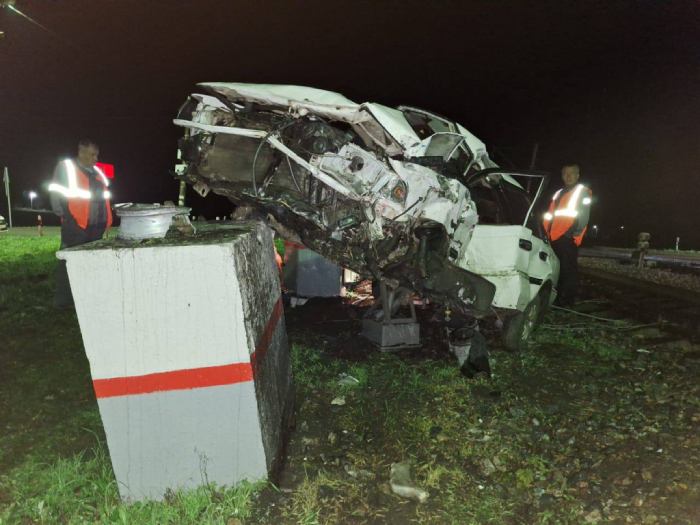 По предварительным данным, ночью 12 августа водитель легкового автомобиля выехал на регулируемый железнодорожный переезд у станции Поздеевка перед приближающимся перед грузовым поездом.