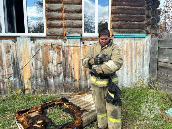 Пожарные спасли кота из горящего частного дома в селе Быково Красночикойского района Забайкальского края.
