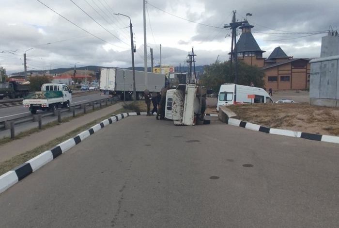 Накануне днём, 26 сентября, на проспекте Автомобилистов в Улан-Удэ произошло ДТП с пострадавшим. По предварительным данным, грузовик Mitsubishi Canter наехал на ограждение, после чего опрокинулся и встал на бок.