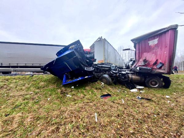 ДТП произошло около 15 часов 1 октября вблизи посёлка Шумский. Участниками аварии стали крупнотоннажные автомобили Volvo, Mercedes-Benz Actros и Sany.