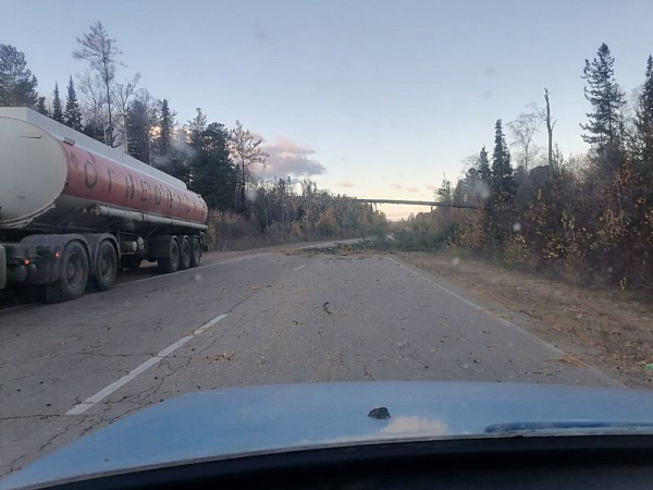 На перевале Пыхта в Прибайкальском районе выпал снег. Там сейчас работает спецтехника. А на дороге между Гремячинском и Туркой лежат деревья, упавшие во время мощного ветра и перегородившие путь автомобилистам.