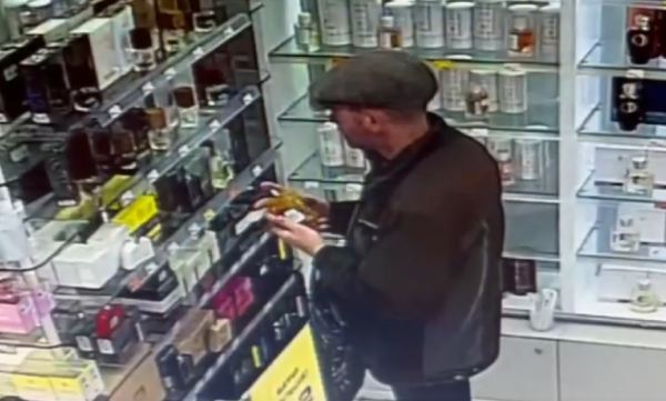 Момент кражи запечатлела камера видеонаблюдения. Судя по кадрам, перед тем как украсть, мужчина опробовал на себе один из ароматов.