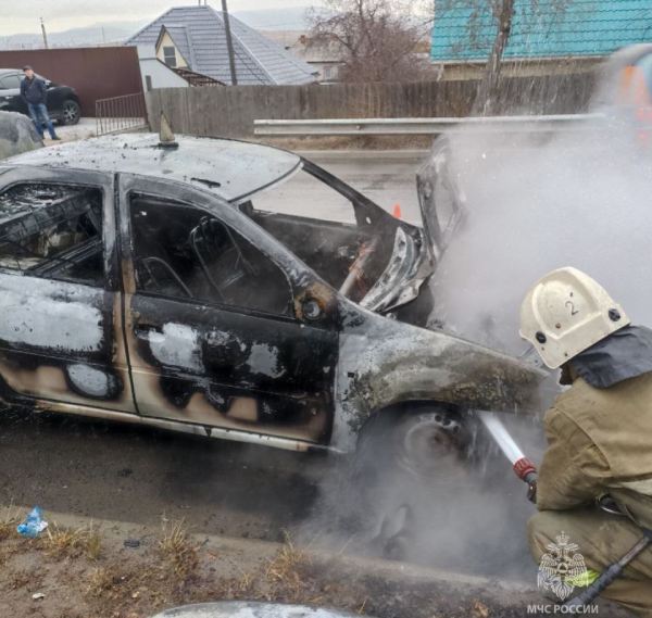 Сегодня утром на улице Николая Петрова в Улан-Удэ загорелся автомобиль.