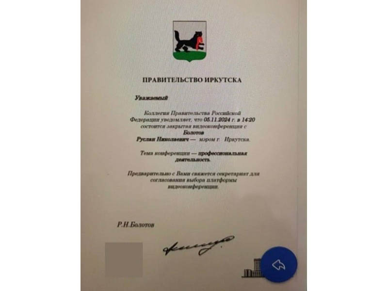 - Бесцеремонности и наглости мошенников нет предела. Сегодня мне сообщили, что нашим иркутским писателям, артистам, музыкантам, другим деятелям культуры приходят электронные письма от некого несуществующего «Правительства Иркутска». На бланке изображён герб города, далее следует текст с приглашением принять участие в закрытой видеоконференции по поводу профессиональной деятельности, размещён QR-код. И всё это – якобы за моей подписью! – возмутился мэр.
