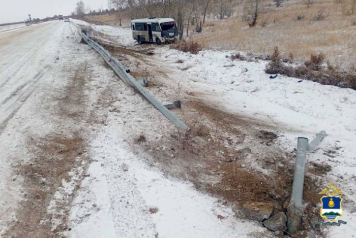 В Бурятии врезался в дорожное ограждение, съехал с дороги и опрокинулся автобус, следовавший по маршруту «Наушки – Улан-Удэ».
