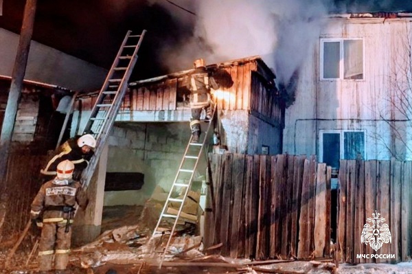Возгорание произошло в столице Бурятии. На улице Вандышева вспыхнули надворные постройки, дом и гараж. Пламя грозило перекинуться на соседние строения.