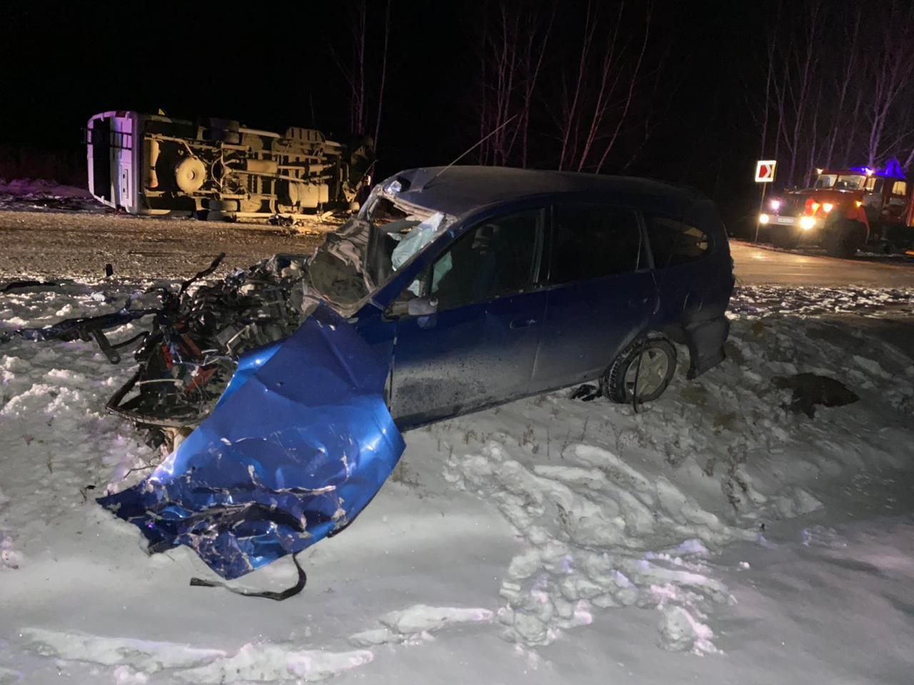 Смертельная авария произошла поздним вечером 23 ноября в Прибайкальском районе. Около 23:10 на дороге столкнулись автомобиль Honda Stream и автобус Mercedes.