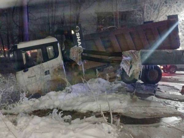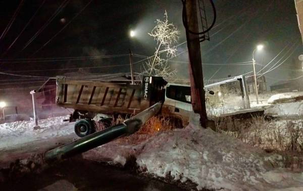 Сегодня ранним утром в Усть-Куте водитель самосвала Shacman врезался в теплотрассу, повредив участок теплосети и трубу холодного водоснабжения.