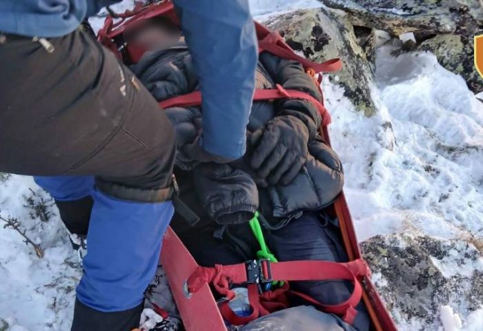 Прибывшие спасатели оказали первую помощь пострадавшему. Затем его переложили на носилки, закрепили страховкой и начали эвакуацию. При этом спасатели шли пешком по сложной скалистой местности, отметили в агентстве ГО и ЧС.