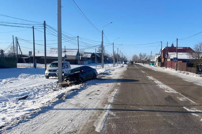 В субботу днём, 11 января, в селе Сосново-Озёрское Еравнинского района Бурятии автомобиль «Тойота Краун» врезался в электроопору.