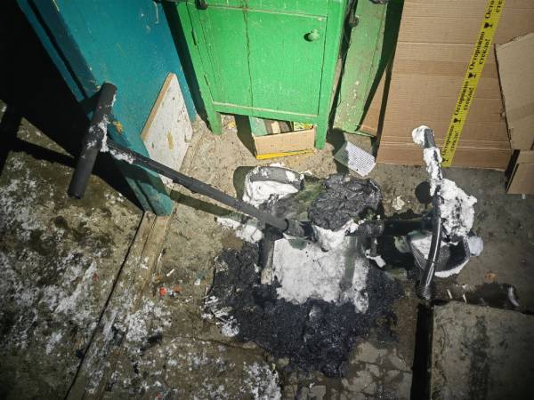 В результате пожара никто не пострадал. Возгорание потушил один из жильцов дома, закидав горящий велосипед снегом.