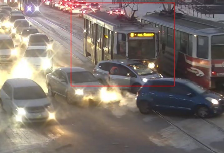 Ещё одна такая авария случилась утром 17 февраля в центре города. Трамвай и легковушка столкнулись на пересечении улиц Ербанова и Коммунистическая, напротив супермаркета «Спутник». Трамвайные пути оказались заняты, а движение – затруднено.
