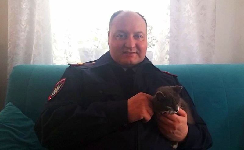 История кошки, которая проделала огромный путь в вагоне с углём, завершилась благополучно. Её новым хозяином стал транспортный полицейский из Улан-Удэ Сергей Писанюк.
