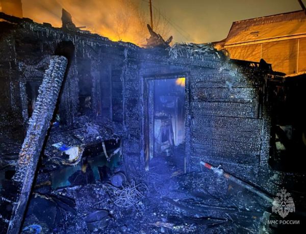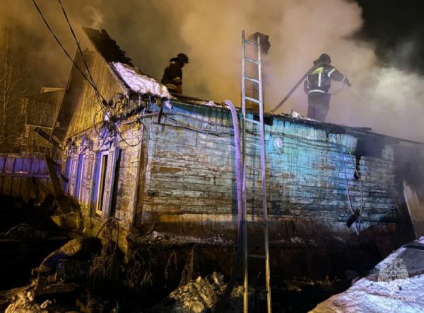 Горел частный жилой дом. Мужчина, проживающий напротив, вышел ночью на улицу и увидел столб густого дыма. Он немедленно вызвал пожарных.