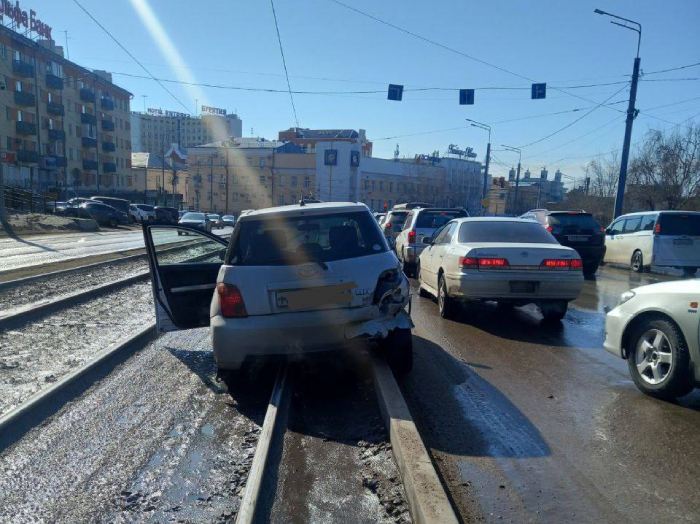 12 марта на улице Ербанова в центре Улан-Удэ, в районе офис-центра «Куб» (бывший Дом быта) столкнулись Toyota Ist и Toyota Corona Premio. В результате ДТП малолитражку буквально «вытолкнули» на пути, прямо перед ехавшим в ту же сторону трамваем.