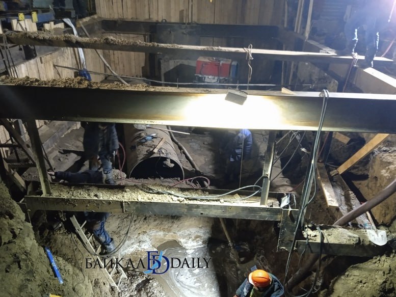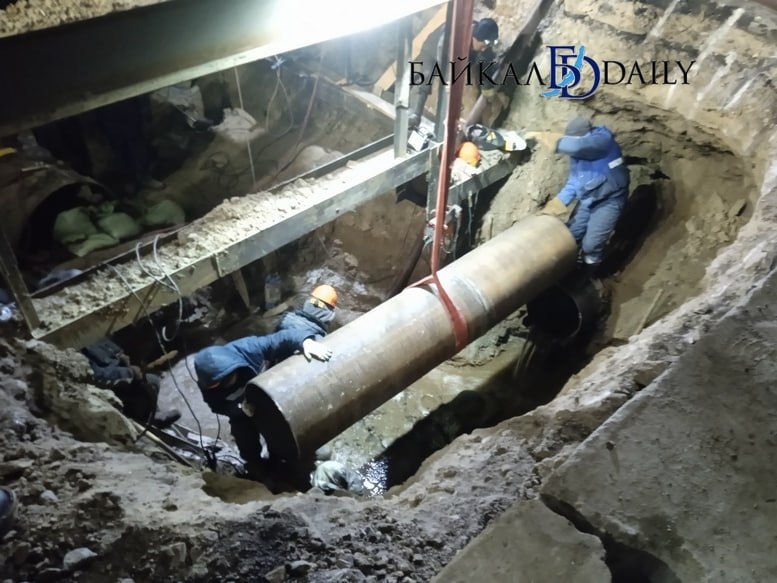 На улице Борсоева в Улан-Удэ между домами 5 и 7 под прожекторами шли авральные ремонтные работы. Каждый из пары десятков рабочих и мастеров занимался своим делом. В яме-котловане готовили основание для установки нового фрагмента трубы. Фрезеровали стыки и снимали мастику с неповреждённой части, обезжиривали перед сваркой. Повреждённый участок водопровода вырезали как раз незадолго до 24:00. Его подняли наверх с помощью экскаватора.