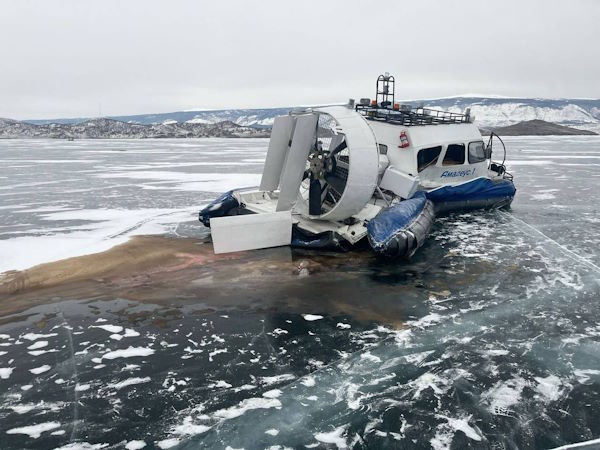 В Иркутской области лёд озера Байкал очистили от загрязнения после столкновения автомобиля и судна на воздушной подушке.