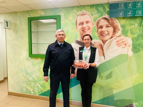 В Иволгинском районе полицейские поблагодарили сотрудницу банка, предотвратившую мошенничество. Начальник районного отдела МВД полковник полиции Александр Биликтуев вручил сладкий презент старшему менеджеру обслуживания Анне Фоменко.