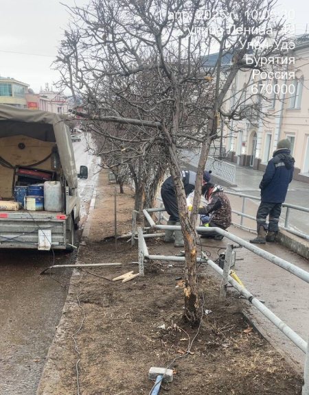 Ночью 1 апреля на улице Ленина в центре Улан-Удэ неизвестные сбили молодую яблоню, росшую недалеко от Триумфальной арки. Упавшее дерево специалисты обнаружили под утро.