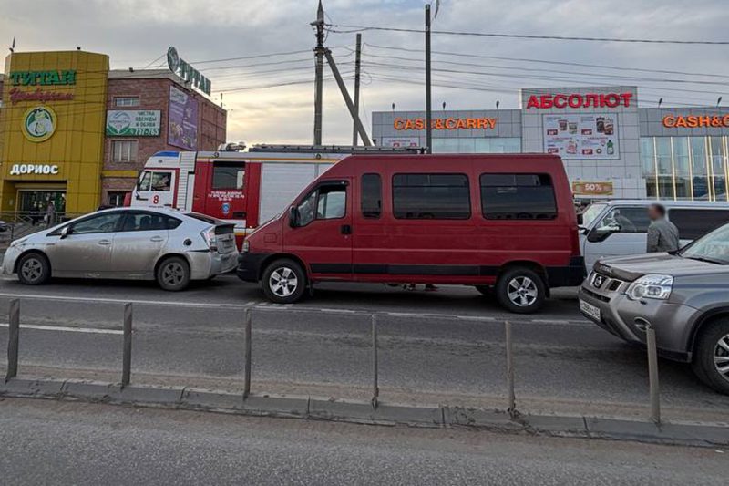 Фургон, маршрутка и легковой автомобиль столкнулись в Улан-Удэ. ДТП произошло накануне вечером, 15 апреля, в 102 квартале.