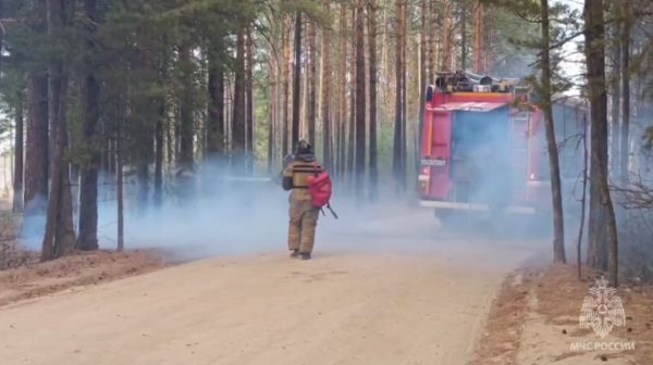 В Забайкальском крае пожарные тушат пожар, действующий возле СНТ «Лесовод».
