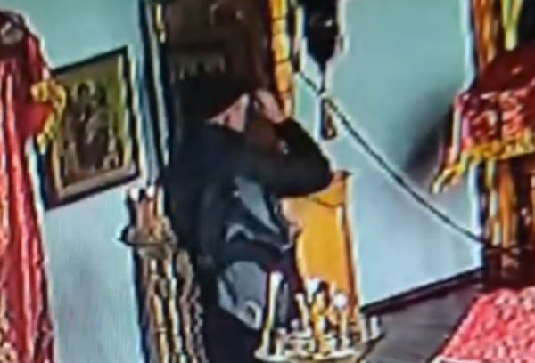 Инцидент произошёл вечером 16 мая. Происходящее сняла видеокамера, установленная в храме.