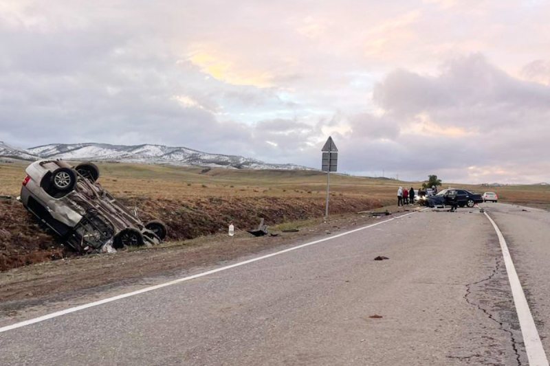 Установлено, что в семи километрах от села Хурумша 21-летний водитель автомобиля «Тойота Краун» выехал на полосу встречного движения и врезался в «Тойоту Клюгер», которой управляла 50-летняя женщина. От удара «Клюгер» вылетел в кювет и перевернулся на крышу.