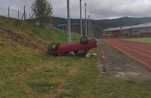 Как установили сотрудники Госавтоинспекции, 17-летний юноша, управляя автомобилем «Тойота Королла», не справился с управлением, наехал на металлический забор. Иномарка опрокинулась на стадион местной школы.