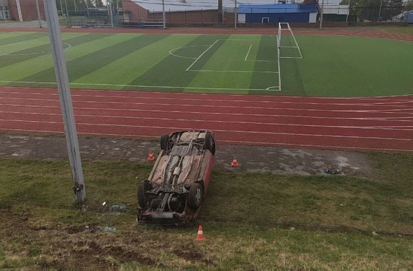 Как установили сотрудники Госавтоинспекции, 17-летний юноша, управляя автомобилем «Тойота Королла», не справился с управлением, наехал на металлический забор. Иномарка опрокинулась на стадион местной школы.