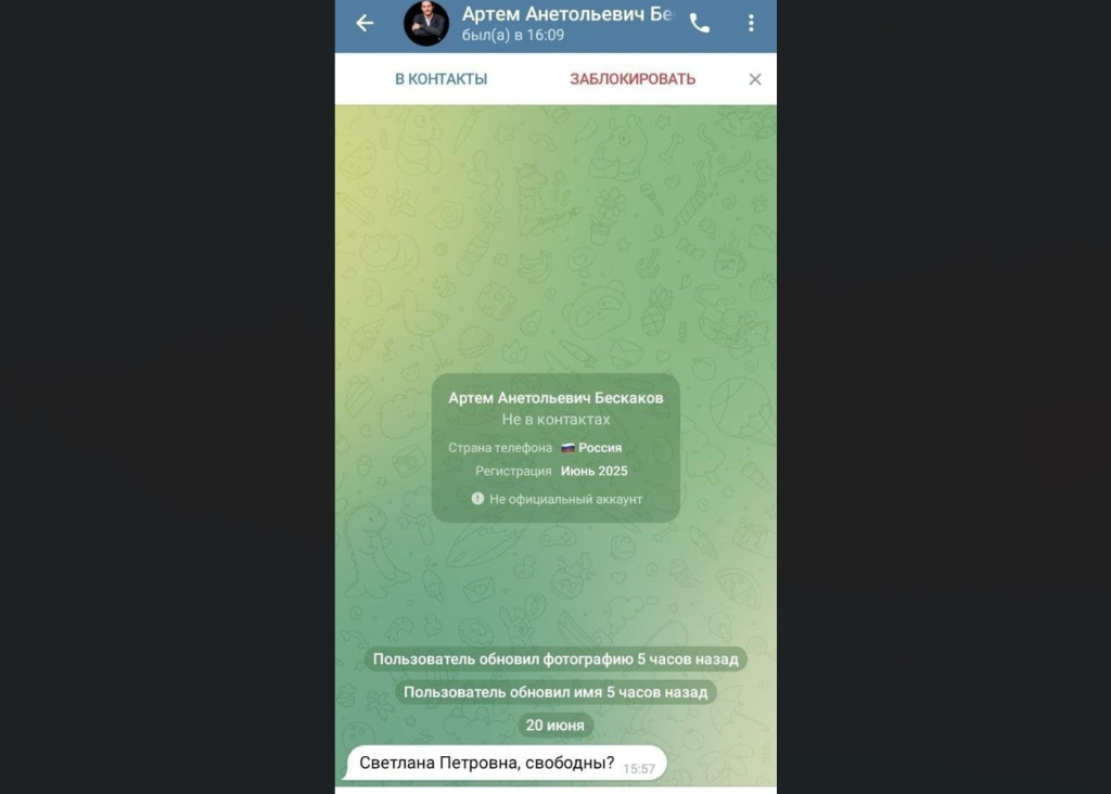 Мошенники создали фейковый аккаунт директора Молодёжного художественного театра Улан-Удэ Артёма Баскакова в Telegram и пишут сотрудникам.