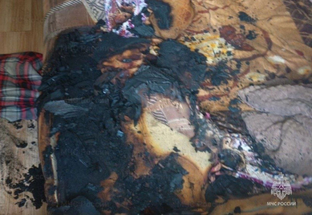 Предварительная причина пожара - неосторожность при курении.